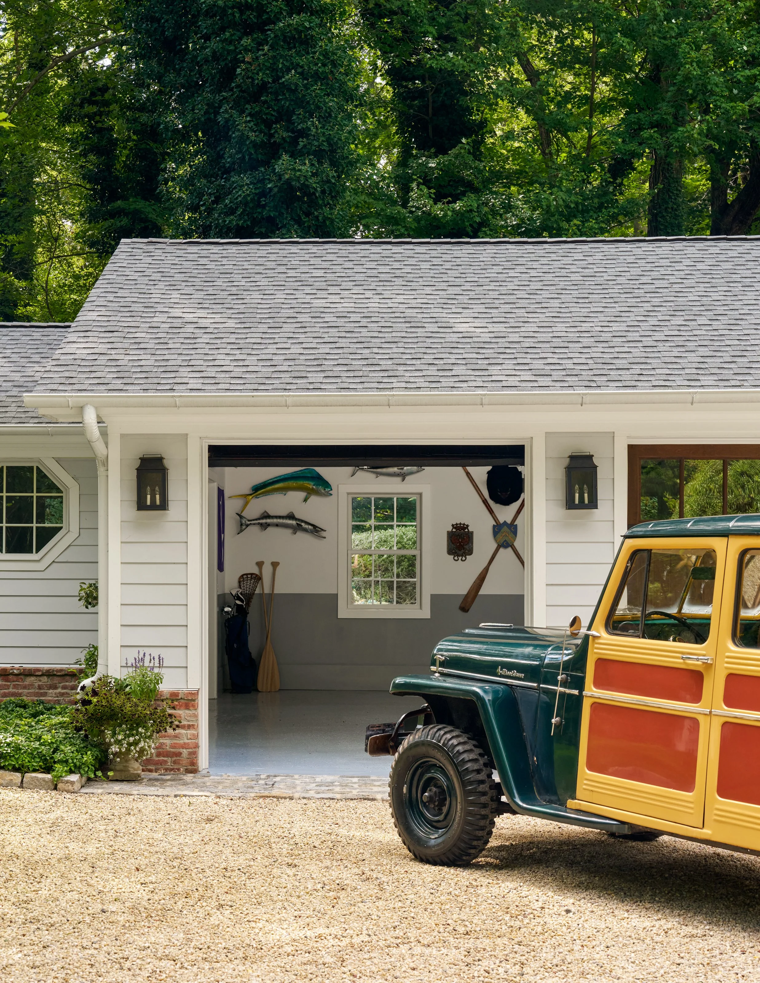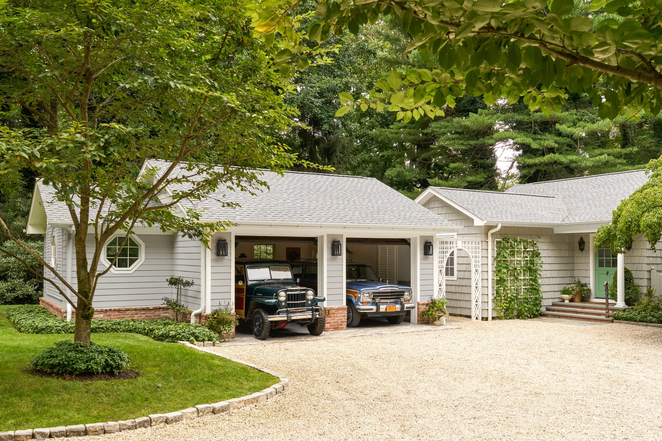 In order to house a pair of vintage jeeps and a golf cart for heading to the club, a new